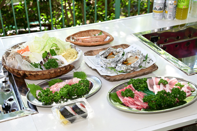 牛肉 鶏肉 とん漬けホイル焼 エビ 骨付ウインナ 虹鱒(鮎)